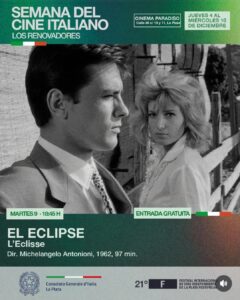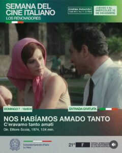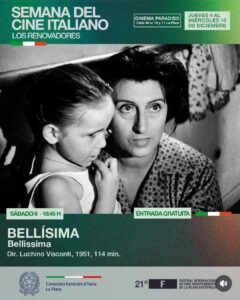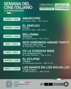 A lo largo de siete jornadas, el público podrá disfrutar de títulos emblemáticos como Amarcord, Il Posto, Bellissima, C’eravamo tanto amati, Io la conoscevo bene, L’Eclisse y I pugni in tasca.