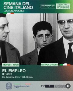 Federico Fellini, Luchino Visconti, Michelangelo Antonioni, Marco Bellocchio, Ermanno Olmi, Ettore Scola y Antonio Pietrangeli conforman una grilla que recorre décadas de innovación, sensibilidad y compromiso artístico.