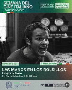 El Consulado General de Italia en La Plata, junto al Festival Internacional de Cine Independiente FestiFreak, impulsa una nueva edición de la Semana de Cine Italiano: los renovadores, que se desarrollará del jueves 4 al miércoles 10 de diciembre de 2025 en Cinema Paradiso. Todas las funciones serán a las 18.45, con acceso libre y gratuito.